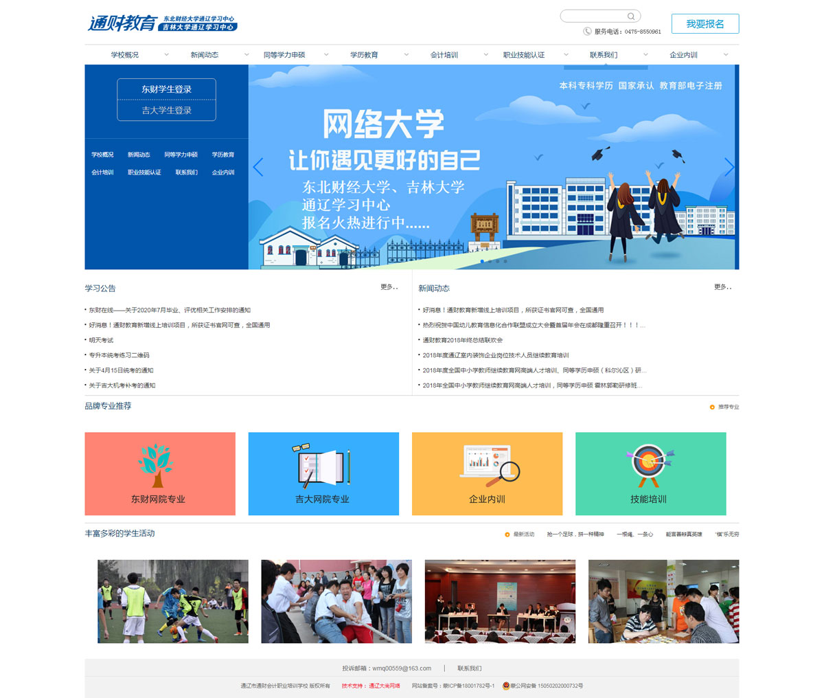 2013年、2014年相繼經(jīng)東北財(cái)經(jīng)大學(xué)、吉林大學(xué)、內(nèi)蒙古教育廳審批成立東北財(cái)經(jīng)大學(xué)網(wǎng)絡(luò)教育學(xué)院《通遼學(xué)習(xí)中心》、吉林大學(xué)網(wǎng)絡(luò)教育學(xué)院《通遼學(xué)習(xí)中心》。